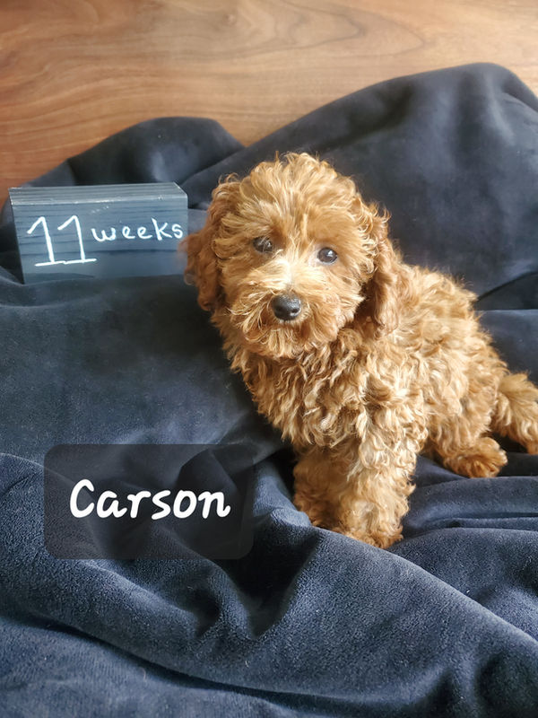 Winston is a gorgeous F2b Goldendoodle, weighs 10 pounds. He is very active little man, loves playing outdoors and playing with children. Will make awesome puppies.